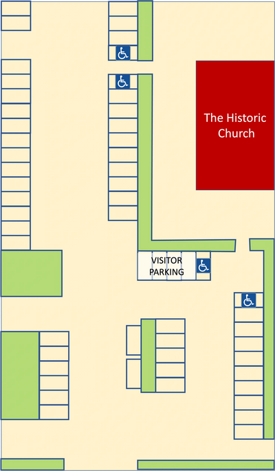 We have ample parking in front of the Church and the Parish House. Some of our parking places are designated as handicapped spaces for those with disabilities -- there is a ramp to access the Historic Church on the south (back) side of the building. You will also find several parking spaces marked especially for our visitors. If you are new to our parish, these are for you.